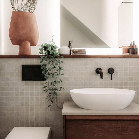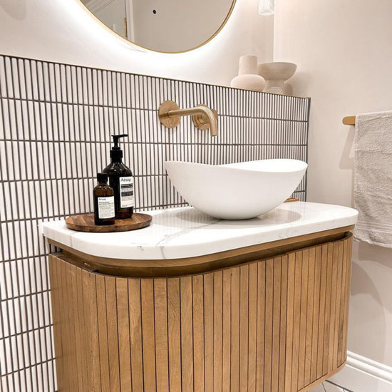 A countertop basin sits on top of a countertop shelf, or a vanity unit. It’s a timeless piece that embraces modern elegance. Countertop basins can be paired with deck mounted, wall mounted or even freestanding taps.