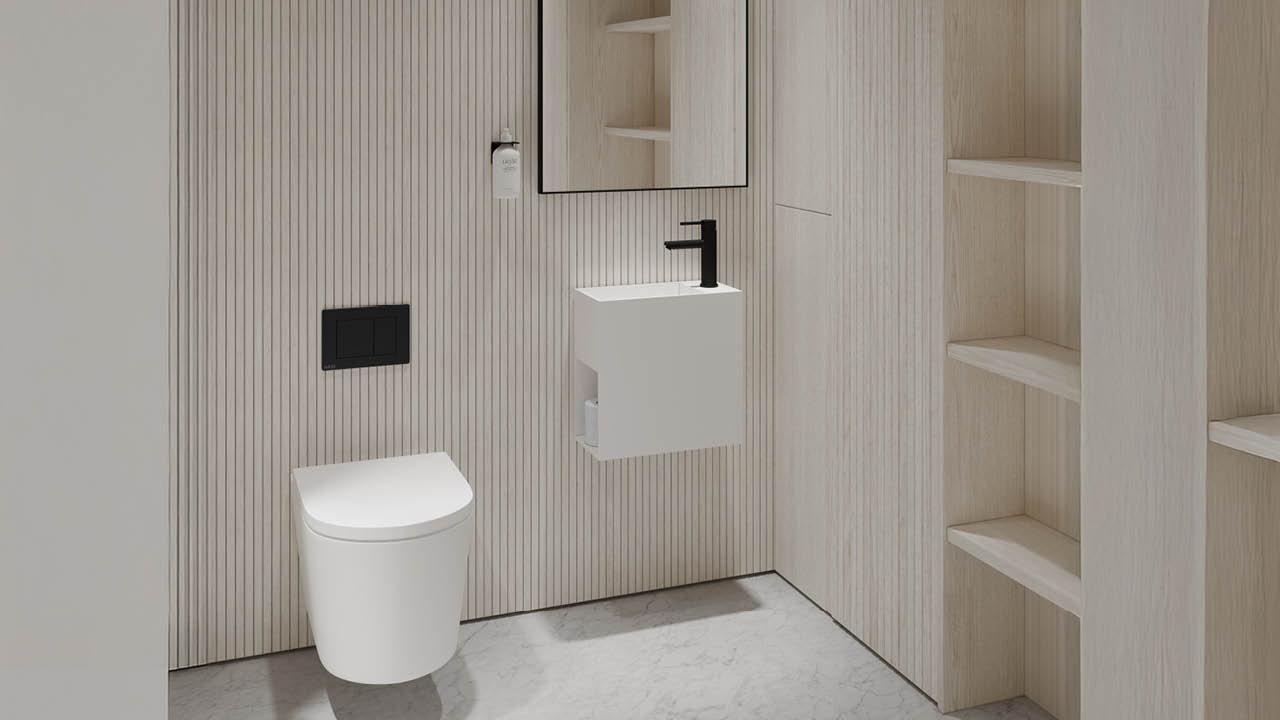 Back-to-wall toilets are a great space-saving solution for small bathrooms because they streamline the layout. Back-to-wall designs sit flush against the wall, concealing the cistern within the wall itself. This creates a clean, minimalist aesthetic that reduces visual clutter, making small bathrooms feel spacious and open. This design also allows for more efficient placement of other elements, such as vanities, storage, or shower enclosures, improving circulation and usability in a compact environment. Back-to-wall toilets are a simple yet sophisticated way to maximise both style and space in small bathrooms.
