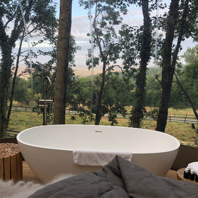 Set in secluded nooks on the reserve, guests can also enjoy a stay at The TreeTop Bubble or The Lookout Bubble - which opened in 2023 - for the ultimate room with a view. In addition to transparent walls and ceilings that provide breathtaking, panoramic vistas of the park, the bubbles are beautifully appointed for a comfortable stay, and come complete with a king-size bed, living room area, ensuite wet room, air conditioning, wifi, concierge service, and even your very own golf buggy to help you more easily explore your stunning surroundings. Designed to blend with the landscape, each of the one-of-a-kind lodgings also features a Picasso Freestanding Stone Bath, enabling you to enjoy a long, hot soak within its deep curves and smooth finish while watching the stars.