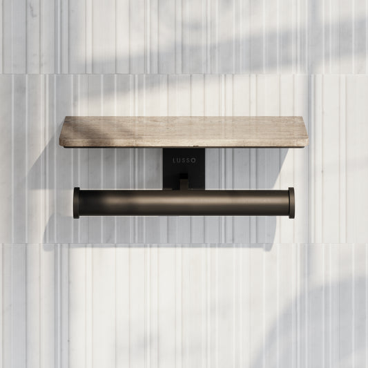 Deka Matte Black Double Toilet Roll Holder with Travertine Stone ShelfRegular price £207.00 GBP (£172.50 EX VAT)Sale price £207.00 GBP (£172.50 EX VAT)Unit price perRegular price £207.00 GBP (£172.50 EX VAT)Sale price £207.00 GBP (£172.50 EX VAT)Unit price per
