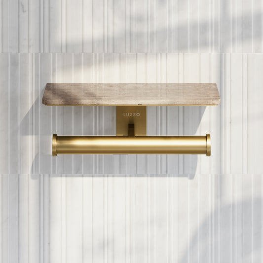 Deka Brushed Gold Double Toilet Roll Holder with Travertine Stone ShelfRegular price £207.00 GBP (£172.50 EX VAT)Sale price £207.00 GBP (£172.50 EX VAT)Unit price perRegular price £207.00 GBP (£172.50 EX VAT)Sale price £207.00 GBP (£172.50 EX VAT)Unit price per