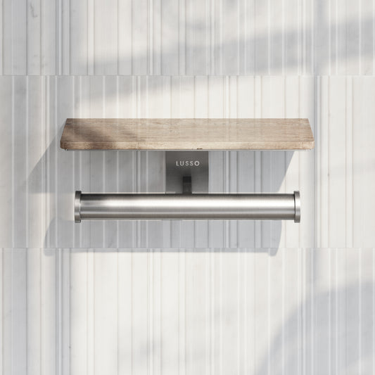 Deka Brushed Stainless Double Toilet Roll Holder with Travertine Stone ShelfRegular price £207.00 GBP (£172.50 EX VAT)Sale price £207.00 GBP (£172.50 EX VAT)Unit price perRegular price £207.00 GBP (£172.50 EX VAT)Sale price £207.00 GBP (£172.50 EX VAT)Unit price per