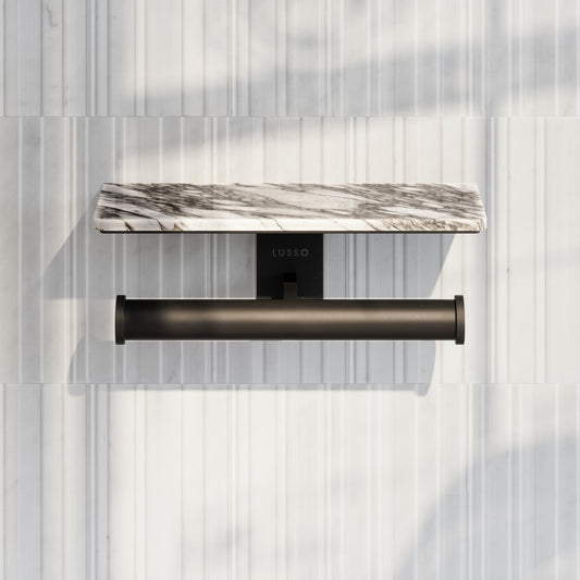 Deka Matte Black Double Toilet Roll Holder with Arabescato Marble ShelfRegular price £207.00 GBP (£172.50 EX VAT)Sale price £207.00 GBP (£172.50 EX VAT)Unit price perRegular price £207.00 GBP (£172.50 EX VAT)Sale price £207.00 GBP (£172.50 EX VAT)Unit price per