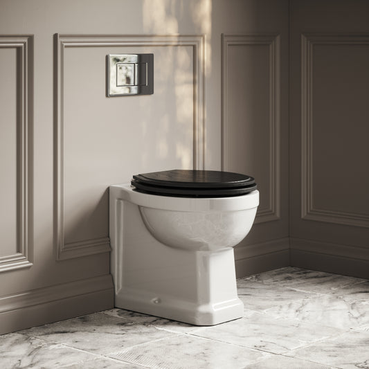 Portland Back To Wall Traditional Toilet With Solid Oak Matte Black Seat with Concealed Cistern and Polished Nickel Flush PlateRegular price £587.00 GBP (£489.17 EX VAT)Sale price £587.00 GBP (£489.17 EX VAT)Unit price perRegular price £587.00 GBP (£489.17 EX VAT)Sale price £587.00 GBP (£489.17 EX VAT)Unit price per