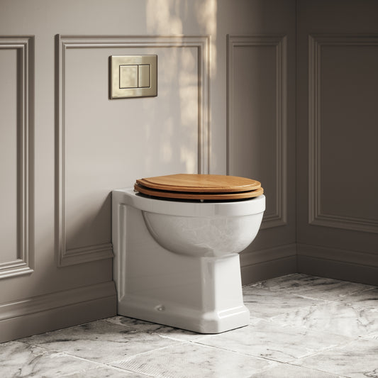 Portland Back To Wall Traditional Toilet With Solid Oak Seat with Concealed Cistern and Brushed Gold Flush PlateRegular price £587.00 GBP (£489.17 EX VAT)Sale price £587.00 GBP (£489.17 EX VAT)Unit price perRegular price £587.00 GBP (£489.17 EX VAT)Sale price £587.00 GBP (£489.17 EX VAT)Unit price per
