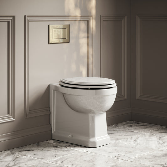 Portland Back to Wall Traditional Toilet with Solid Oak Matte White Seat (Brushed Gold Fittings)Regular price £377.00 GBP (£314.17 EX VAT)Sale price £377.00 GBP (£314.17 EX VAT)Unit price perRegular price £377.00 GBP (£314.17 EX VAT)Sale price £377.00 GBP (£314.17 EX VAT)Unit price per
