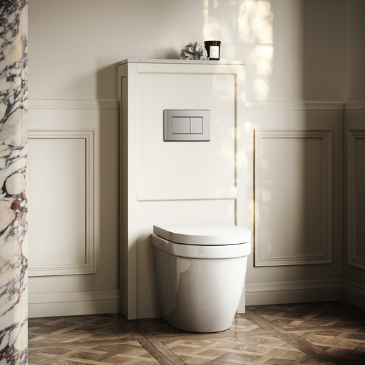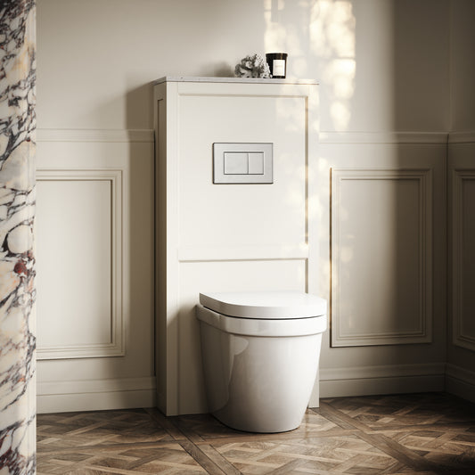 Berkeley Traditional Back to Wall Rimless Toilet with Concealed Cistern, Velvet Cream Claridge Housing and Matte White Flush PlateRegular price £787.00 GBP (£655.83 EX VAT)Sale price £787.00 GBP (£655.83 EX VAT)Unit price perRegular price £787.00 GBP (£655.83 EX VAT)Sale price £787.00 GBP (£655.83 EX VAT)Unit price per