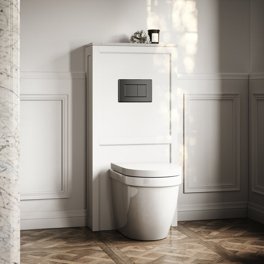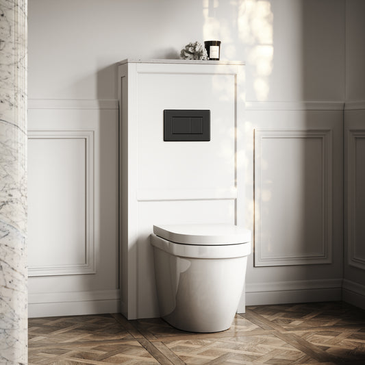 Berkeley Traditional Back to Wall Rimless Toilet with Concealed Cistern, Matte White Claridge Housing and Matte Black Flush PlateRegular price £890.00 GBP (£741.67 EX VAT)Sale price £890.00 GBP (£741.67 EX VAT)Unit price perRegular price £890.00 GBP (£741.67 EX VAT)Sale price £890.00 GBP (£741.67 EX VAT)Unit price per