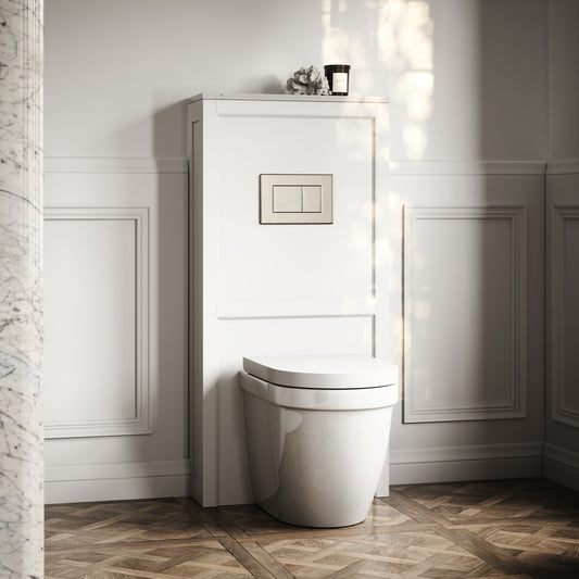 Berkeley Traditional Back to Wall Rimless Toilet with Concealed Cistern, Matte White Claridge Housing and Brushed Stainless Flush PlateRegular price £890.00 GBP (£741.67 EX VAT)Sale price £890.00 GBP (£741.67 EX VAT)Unit price perRegular price £890.00 GBP (£741.67 EX VAT)Sale price £890.00 GBP (£741.67 EX VAT)Unit price per