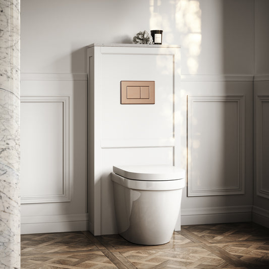 Berkeley Traditional Back to Wall Rimless Toilet with Concealed Cistern, Matte White Claridge Housing and Rose Gold Flush PlateRegular price £880.00 GBP (£733.33 EX VAT)Regular priceUnit price per