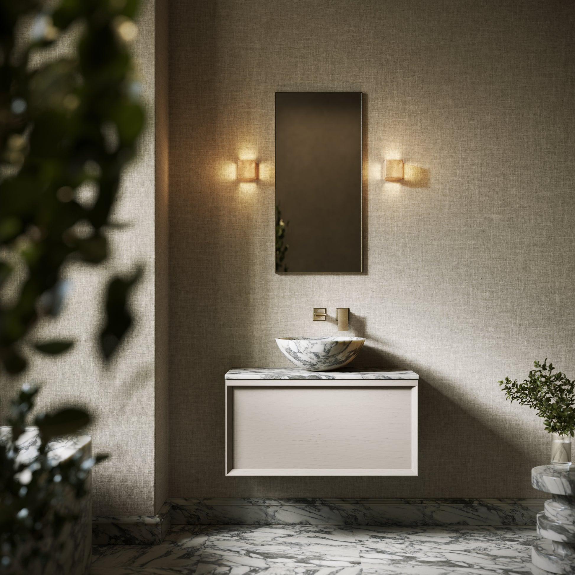 Extracted from the North of Italy, Arabescato is an exclusive marble stone defined by its crisp white surface and strokes of charcoal black as well as its curvaceous structure. The distinctive patterning creates a focal point to your bathroom, particularly when paired with our marble vanity units and Porto range of taps.
