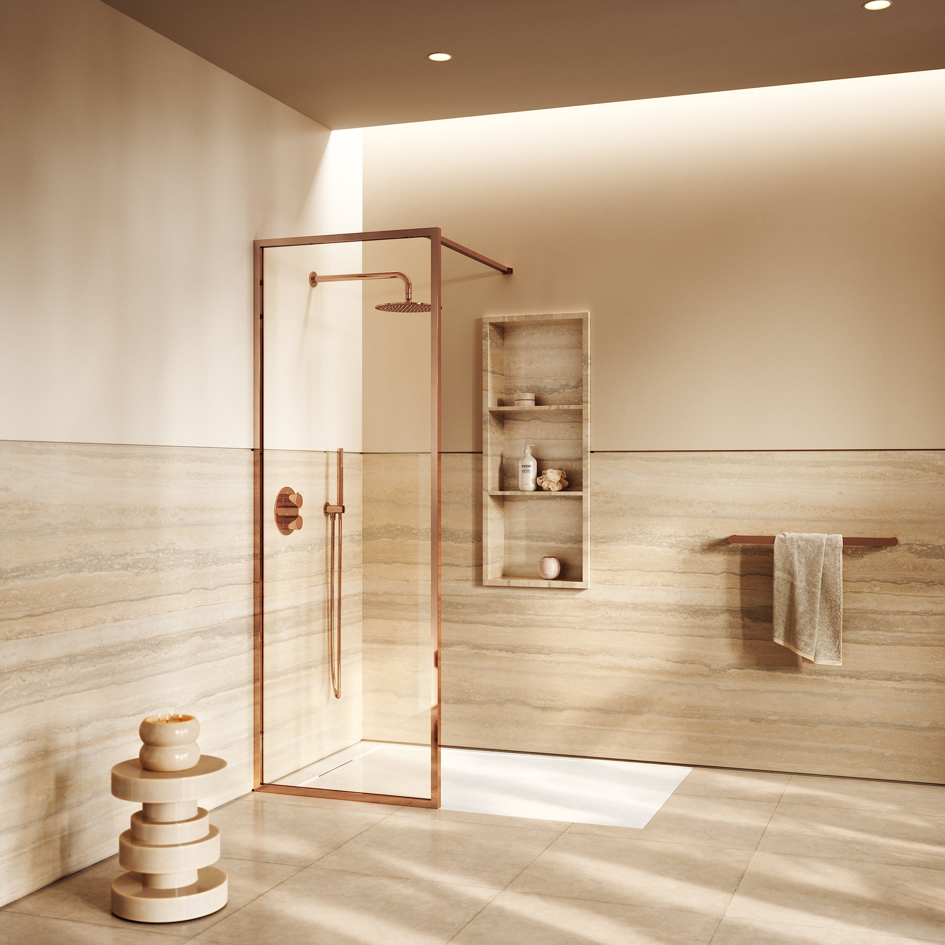 The Designo Shower Kit features toughened glass panels treated with Clear Glaze technology, ensuring water resistance and easy maintenance. Framed in a modern rose gold structure, it pairs beautifully with our wider rose gold collection including taps, showers and bathroom accessories, for a cohesive look. Available in sizes from 1000 x 800mm to 1700 x 900mm, it suits both compact and spacious interiors.