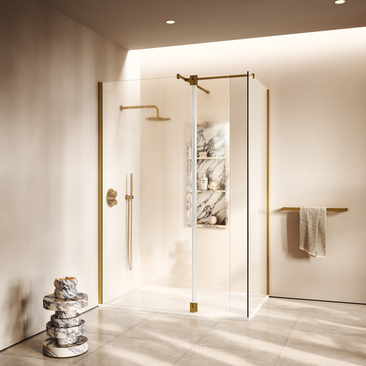 Opulence Brushed Gold Complete Walk In Shower Enclosure - KIT B - All SizesRegular price From £1,697.00 (£1,414.17 EX VAT)Sale price From £1,697.00 (£1,414.17 EX VAT)Unit price perRegular price From £1,697.00 (£1,414.17 EX VAT)Sale price From £1,697.00 (£1,414.17 EX VAT)Unit price per