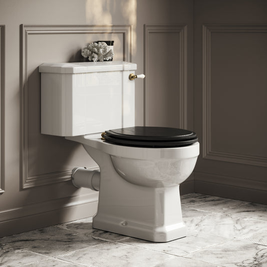 Portland Close Coupled Traditional Toilet with Solid Oak Matte Black seat (Brushed Gold Fittings)Regular price £497.00 GBP (£414.17 EX VAT)Sale price £497.00 GBP (£414.17 EX VAT)Unit price perRegular price £497.00 GBP (£414.17 EX VAT)Sale price £497.00 GBP (£414.17 EX VAT)Unit price per