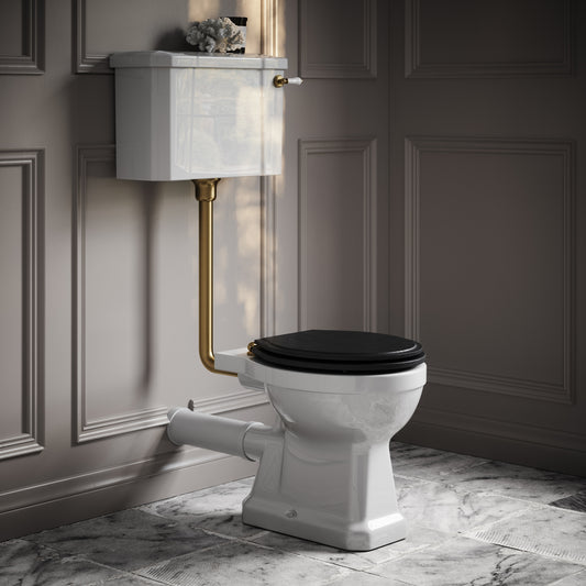 Portland Low Level Traditional Toilet with Solid Oak Matte Black seat (Brushed Gold Fittings)Regular price £597.00 GBP (£497.50 EX VAT)Sale price £597.00 GBP (£497.50 EX VAT)Unit price perRegular price £597.00 GBP (£497.50 EX VAT)Sale price £597.00 GBP (£497.50 EX VAT)Unit price per