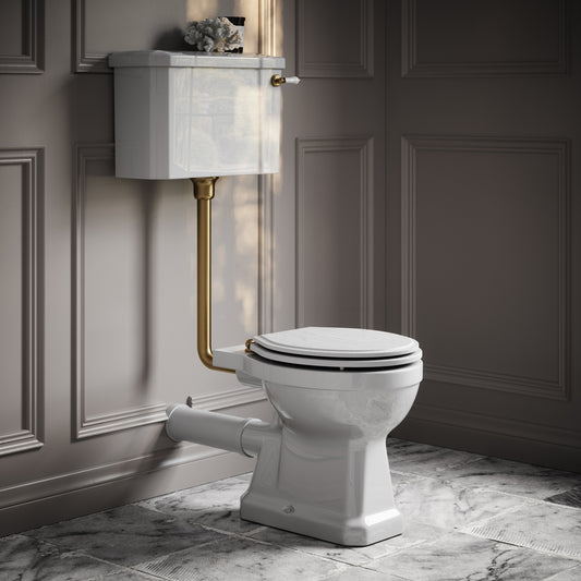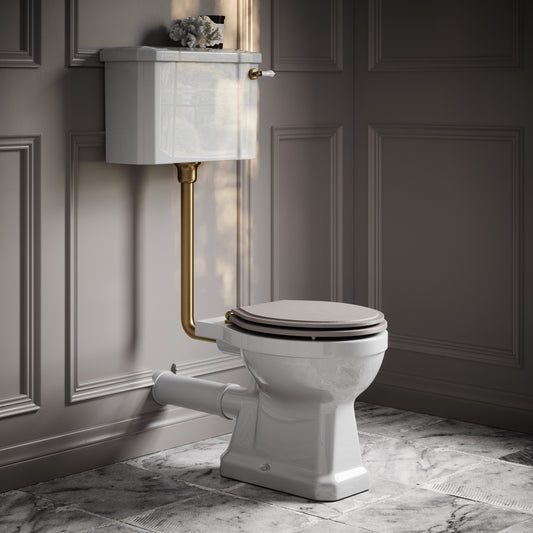 Portland Low Level Traditional Toilet with Solid Oak Matte White seat (Brushed Gold Fittings)Regular price £597.00 GBP (£497.50 EX VAT)Sale price £597.00 GBP (£497.50 EX VAT)Unit price perRegular price £597.00 GBP (£497.50 EX VAT)Sale price £597.00 GBP (£497.50 EX VAT)Unit price per