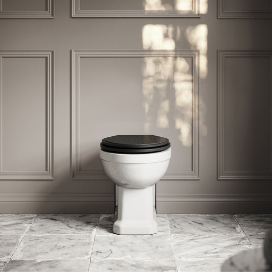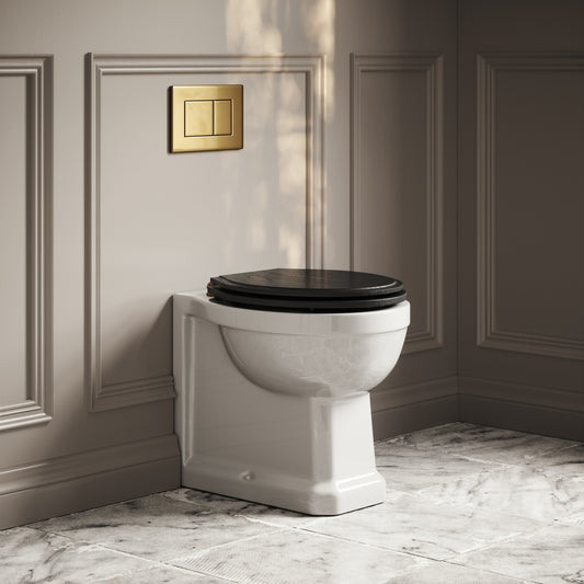 Portland Back to Wall Traditional Toilet with Solid Oak Matte Black Seat (Brushed Gold Fittings)Regular price £377.00 GBP (£314.17 EX VAT)Sale price £377.00 GBP (£314.17 EX VAT)Unit price perRegular price £377.00 GBP (£314.17 EX VAT)Sale price £377.00 GBP (£314.17 EX VAT)Unit price per