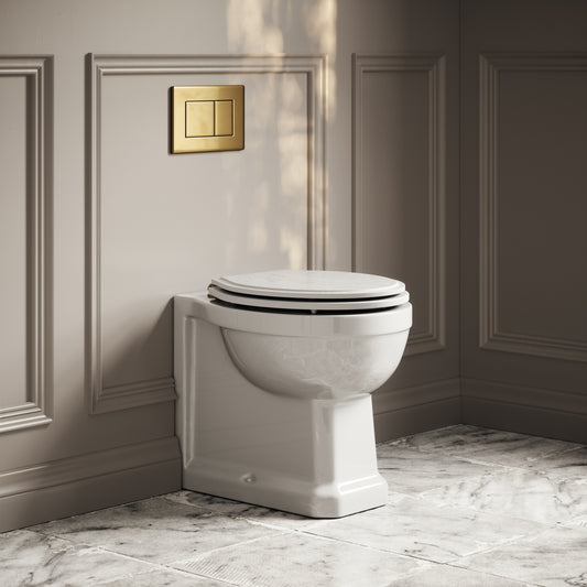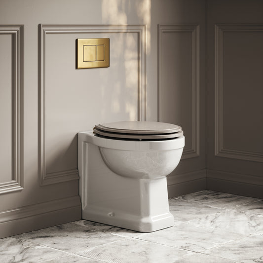 Portland Back To Wall Traditional Toilet With Solid Oak Velvet Beige Seat with Concealed Cistern and Brushed Gold Flush PlateRegular price £597.00 GBP (£497.50 EX VAT)Sale price £597.00 GBP (£497.50 EX VAT)Unit price perRegular price £597.00 GBP (£497.50 EX VAT)Sale price £597.00 GBP (£497.50 EX VAT)Unit price per