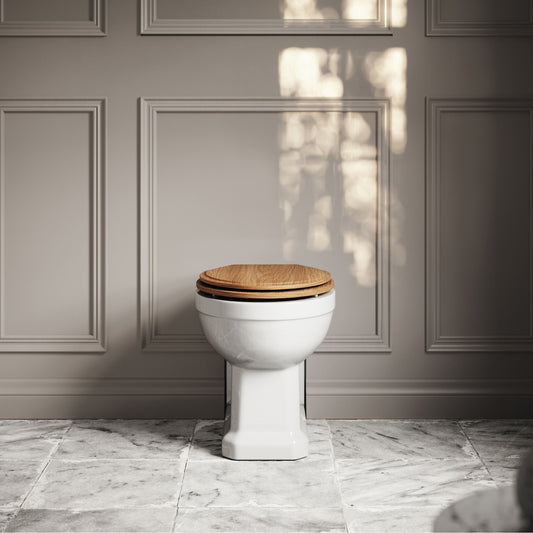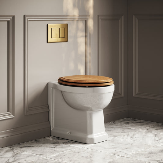 Portland Back To Wall Traditional Toilet With Solid Oak Seat with Concealed Cistern and Brushed Gold Flush PlateRegular price £587.00 GBP (£489.17 EX VAT)Sale price £587.00 GBP (£489.17 EX VAT)Unit price perRegular price £587.00 GBP (£489.17 EX VAT)Sale price £587.00 GBP (£489.17 EX VAT)Unit price per