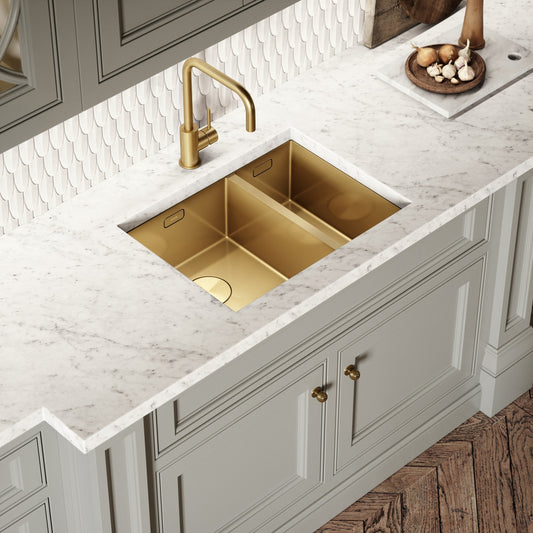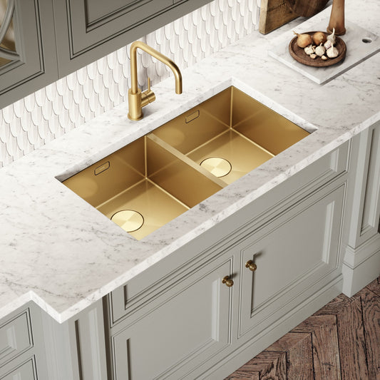 Cubo Brushed Gold Undermount Double Kitchen SinkRegular price £397.00 GBP (£330.83 EX VAT)Sale price £397.00 GBP (£330.83 EX VAT)Unit price perRegular price £397.00 GBP (£330.83 EX VAT)Sale price £397.00 GBP (£330.83 EX VAT)Unit price per