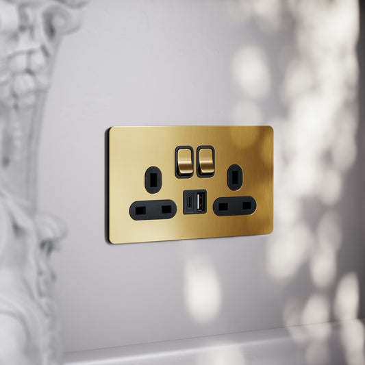 SlimTech Collection Brushed Gold 2 Gang 13A USB & USB-C SocketRegular price £45.00 GBP (£37.50 EX VAT)Sale price £45.00 GBP (£37.50 EX VAT)Unit price perRegular price £45.00 GBP (£37.50 EX VAT)Sale price £45.00 GBP (£37.50 EX VAT)Unit price per