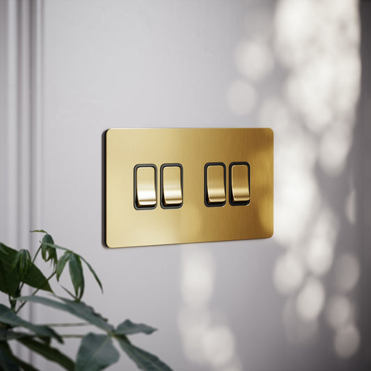 SlimTech Collection Brushed Gold 4 Gang 2 Way SwitchRegular price £55.00 GBP (£45.83 EX VAT)Sale price £55.00 GBP (£45.83 EX VAT)Unit price perRegular price £55.00 GBP (£45.83 EX VAT)Sale price £55.00 GBP (£45.83 EX VAT)Unit price per