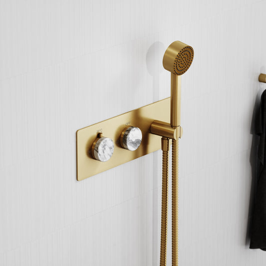 Porto Thermostatic Shower (Brushed Gold & Arabescato Marble)Regular price £997.00 GBP (£830.83 EX VAT)Sale price £997.00 GBP (£830.83 EX VAT)Unit price perRegular price £997.00 GBP (£830.83 EX VAT)Sale price £997.00 GBP (£830.83 EX VAT)Unit price per
