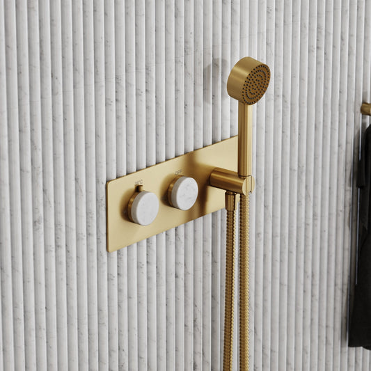 Porto Thermostatic Shower (Brushed Gold & Carrara Marble)Regular price £997.00 GBP (£830.83 EX VAT)Sale price £997.00 GBP (£830.83 EX VAT)Unit price perRegular price £997.00 GBP (£830.83 EX VAT)Sale price £997.00 GBP (£830.83 EX VAT)Unit price per