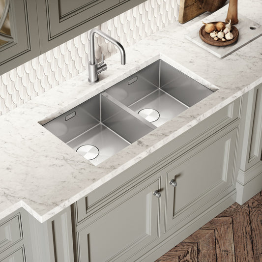Cubo Brushed Stainless Undermount Double Kitchen SinkRegular price £397.00 GBP (£330.83 EX VAT)Sale price £397.00 GBP (£330.83 EX VAT)Unit price perRegular price £397.00 GBP (£330.83 EX VAT)Sale price £397.00 GBP (£330.83 EX VAT)Unit price per