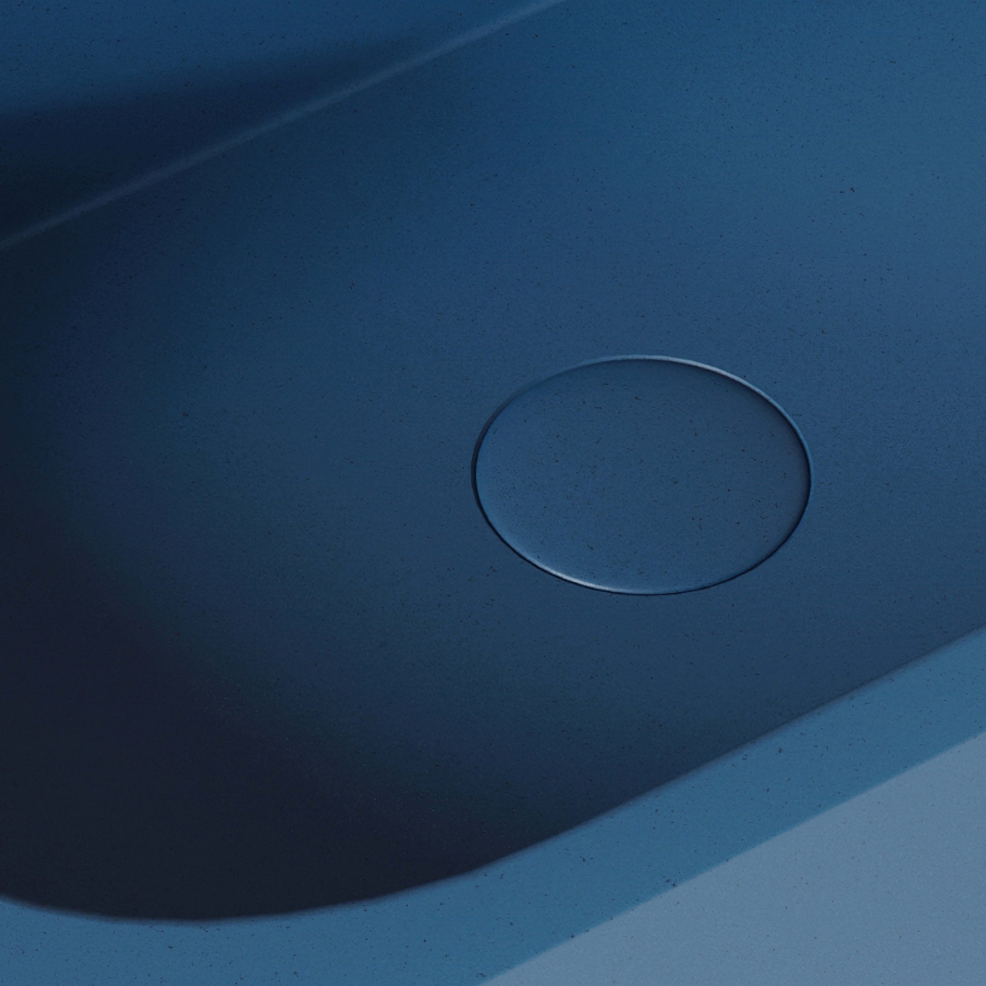 Handcrafted from smooth aggregate-based concrete, the Voluto basin displays curvaceous edging, a generous basin bowl and is designed for wall mounted installation. Shown in Azure, a striking blue, inspired by summers well spent in the South of France, where the rolling waves meet the vivid blue sky. Style with our matte white taps and accessories to create a distinctive and contrasting style.