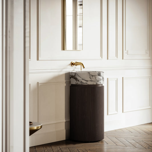 Chic Grey Oak Wood Grain Cylinder Vanity Unit with Stone Basin 450mmRegular price £947.00 GBP (£789.17 EX VAT)Sale price £947.00 GBP (£789.17 EX VAT)Unit price per