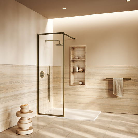 Designo Brushed Gold Complete Walk In Shower Enclosure - KIT A - All SizesRegular price From £937.00 (£780.83 EX VAT)Sale price From £937.00 (£780.83 EX VAT)Unit price perRegular price From £937.00 (£780.83 EX VAT)Sale price From £937.00 (£780.83 EX VAT)Unit price per