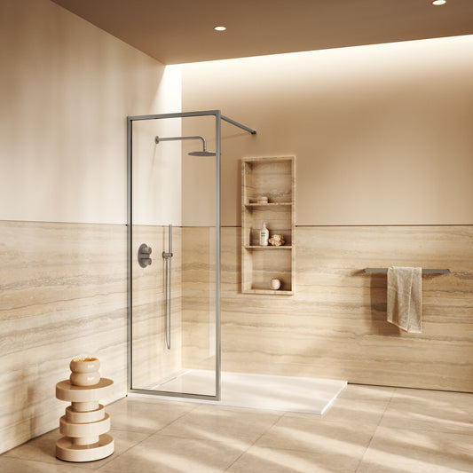 Designo Brushed Stainless Complete Walk In Shower Enclosure - KIT C - All SizesRegular price From £1,177.00 (£980.83 EX VAT)Sale price From £1,177.00 (£980.83 EX VAT)Unit price perRegular price From £1,177.00 (£980.83 EX VAT)Sale price From £1,177.00 (£980.83 EX VAT)Unit price per