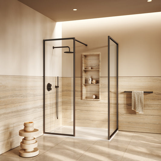 Designo Matte Black Complete Walk In Shower Enclosure - KIT C - All SizesRegular price From £1,197.00 (£997.50 EX VAT)Sale price From £1,197.00 (£997.50 EX VAT)Unit price perRegular price From £1,197.00 (£997.50 EX VAT)Sale price From £1,197.00 (£997.50 EX VAT)Unit price per