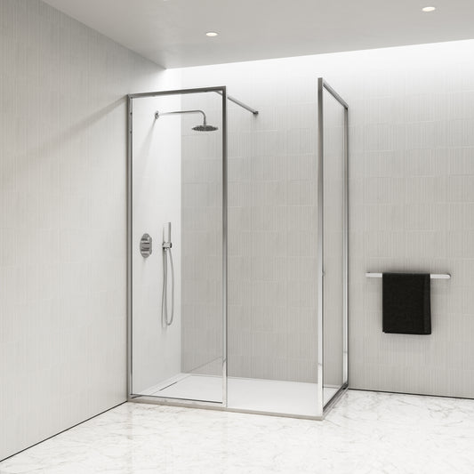 Designo Chrome Complete Walk In Shower Enclosure - KIT C - All SizesRegular price From £1,197.00 (£997.50 EX VAT)Sale price From £1,197.00 (£997.50 EX VAT)Unit price perRegular price From £1,197.00 (£997.50 EX VAT)Sale price From £1,197.00 (£997.50 EX VAT)Unit price per