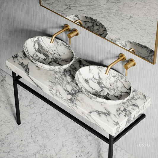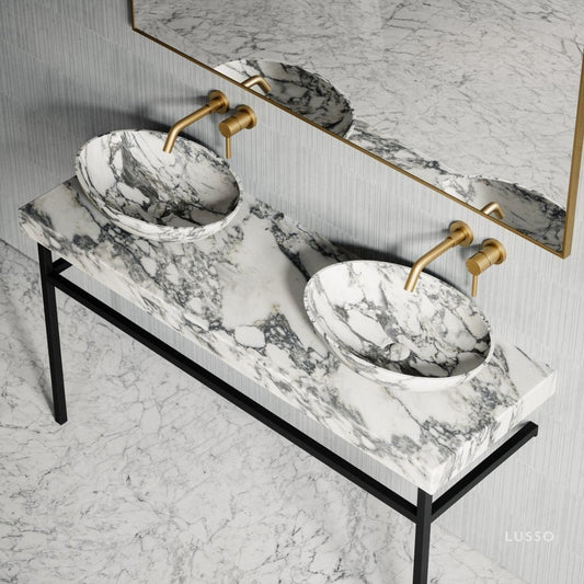 Lomazzo Arabescato Marble Countertop Matte Black Vanity Unit 1400mmRegular price £550.00 GBP (£458.33 EX VAT)Regular priceUnit price per