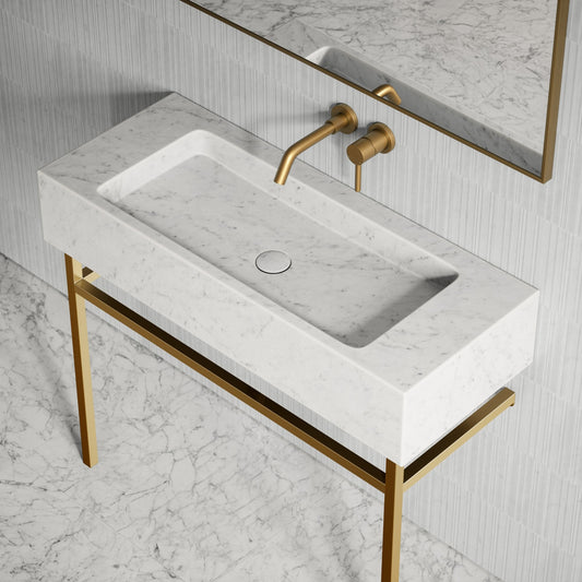 Lomazzo Arabescato Marble Countertop Brushed Gold Vanity Unit 1000mmRegular price £740.00 GBP (£616.67 EX VAT)Regular priceUnit price per