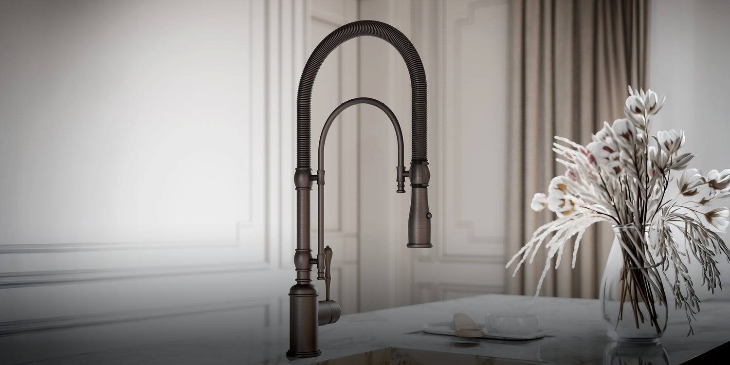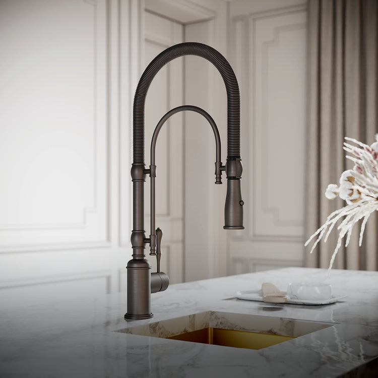 Deep Bronze kitchen taps combine sculptural presence with functional precision. Each piece highlights the rich, warm tones of the finish, creating a striking focal point in the heart of your home. Designed for both classic and contemporary kitchens, these taps offer enduring style and effortless reliability.