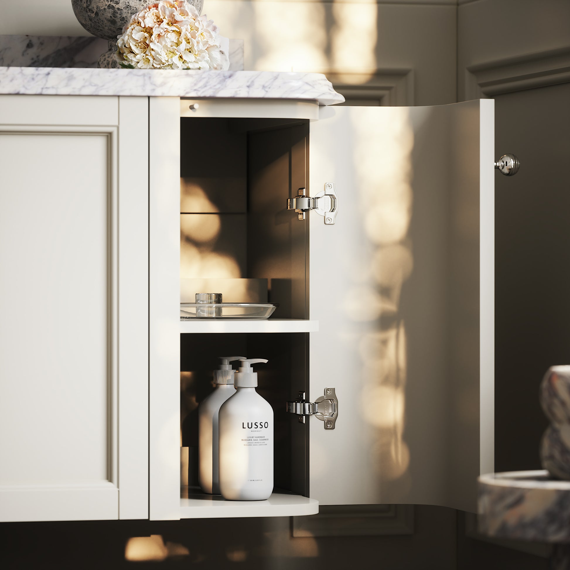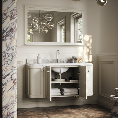 With a width of 1200 mm, the Charsley vanity unit is suitable for a variety of spaces, and in particular it works well in modestly sized bathrooms. As well as its practical sizing, the Charsley offers generous storage space, accessible via a soft closing, push to open mechanism. This practical open and close feature negates the need for door handles unless preferred, and if you do intend on using handles the hinges are completely concealed, meaning the taps and fittings are left completely down to your choice.