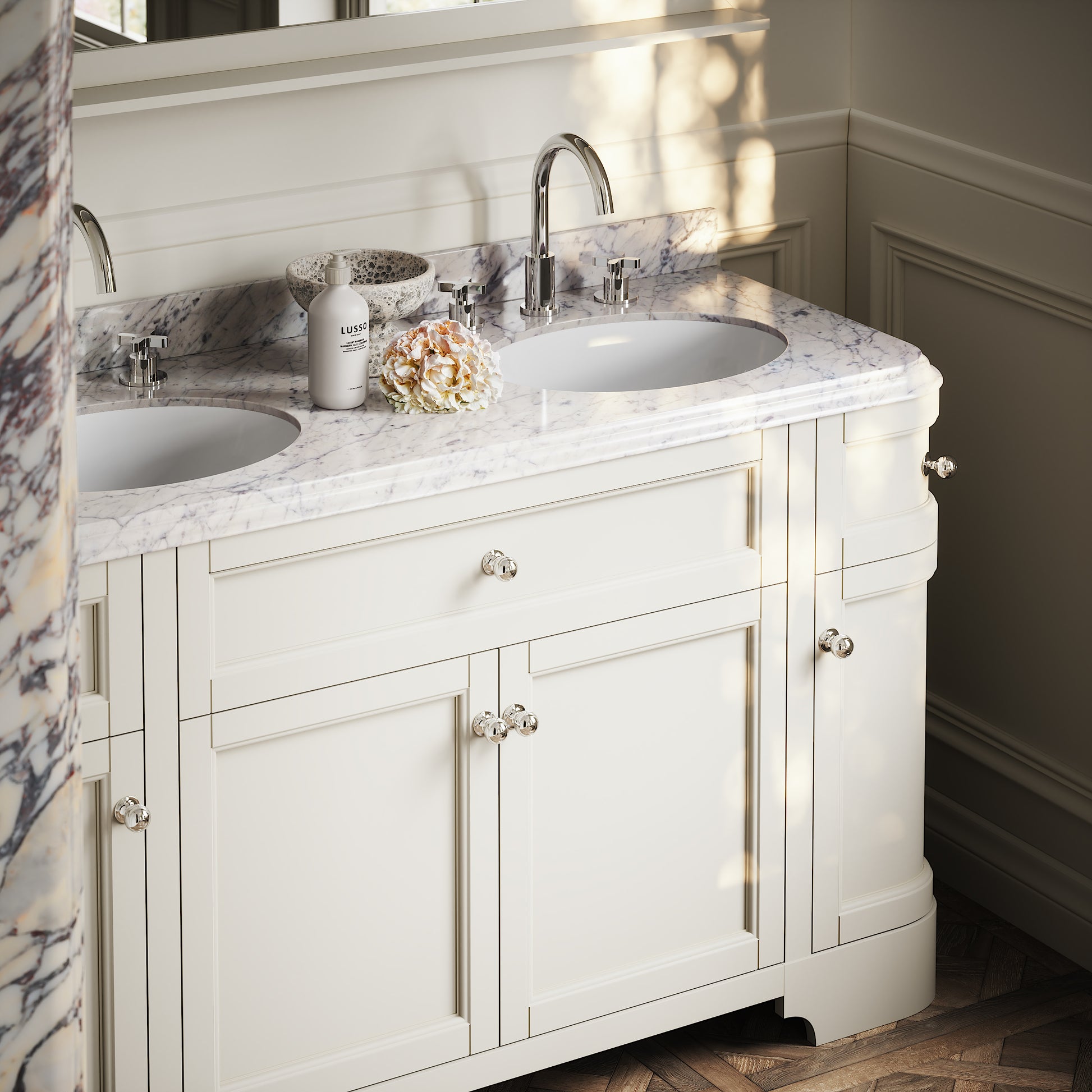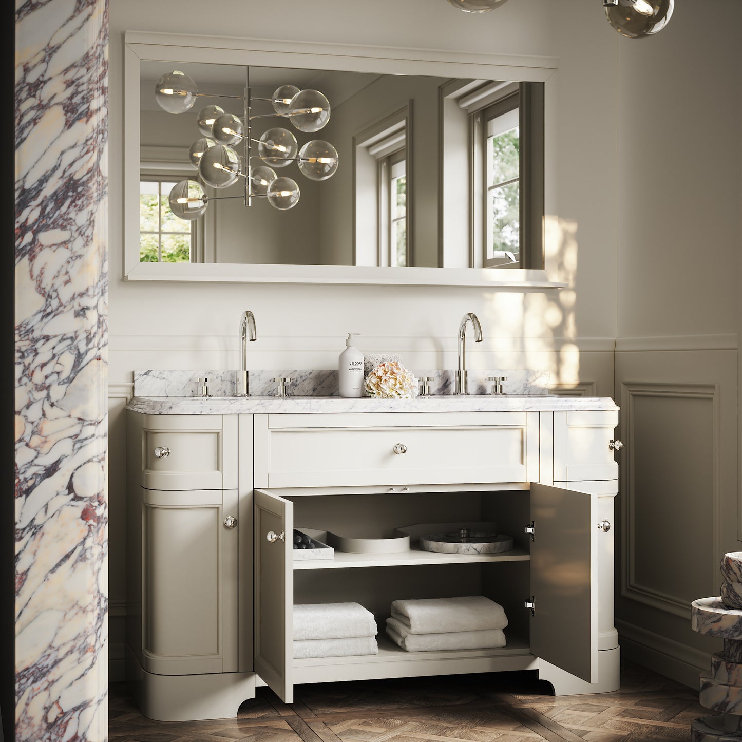 The soft curves, bold shapes and intricate finishings make the Connaught Double Vanity Unit the perfect bathroom addition for couples or families, taking design notes from the 1920s and fusing it with modern interior design.