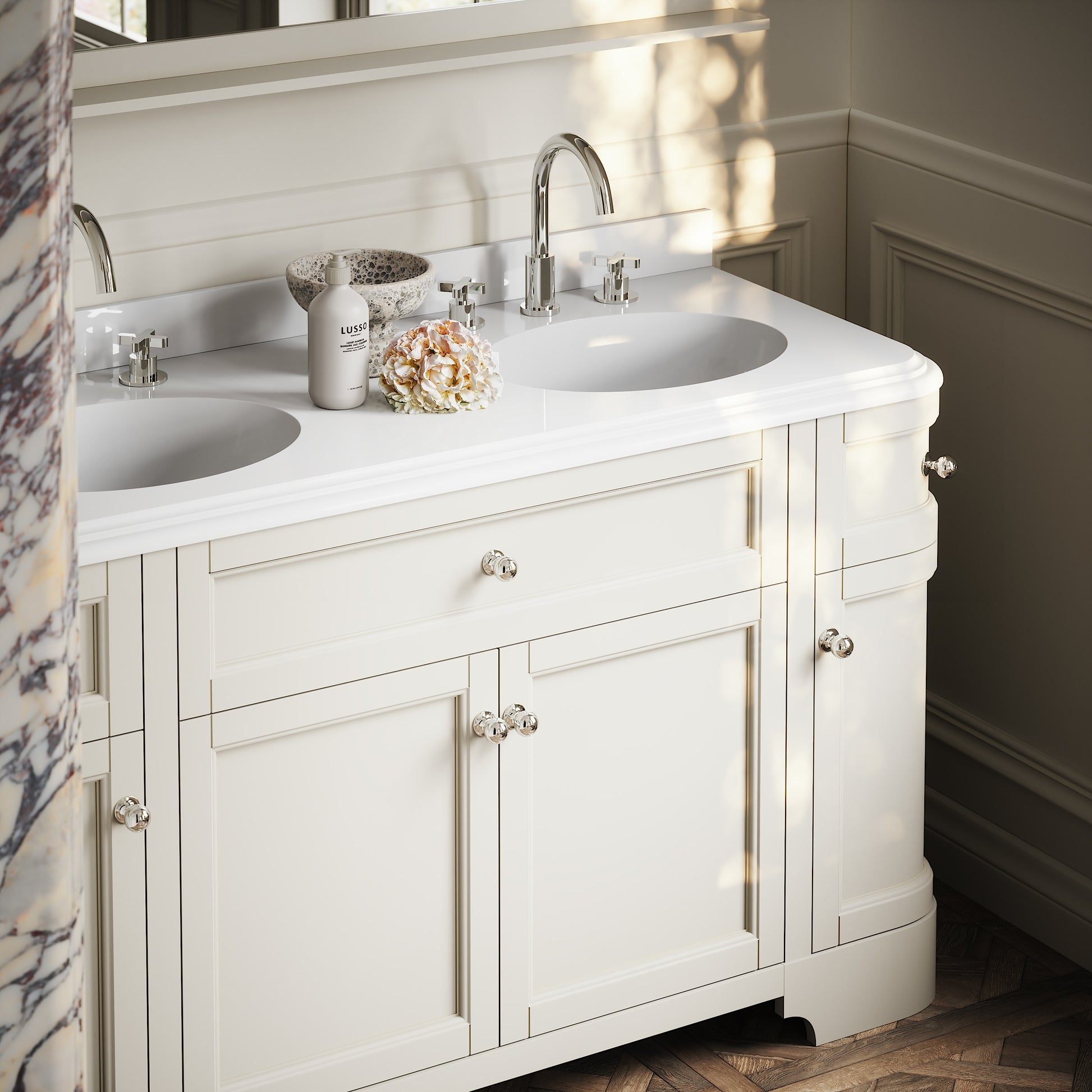 The soft curves, bold shapes and intricate finishings make the Connaught Double Vanity Unit the perfect bathroom addition for couples or families, taking design notes from the 1920s and fusing it with modern interior design.
