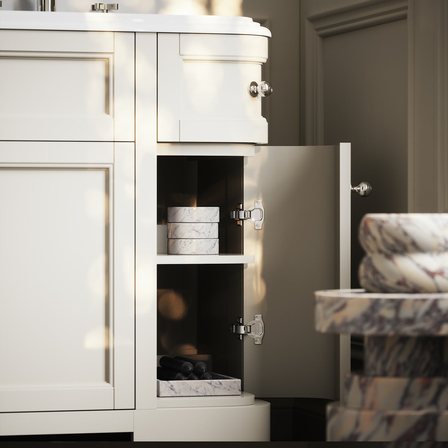 Beautiful in design and exceptional in quality, the Connaught is crafted with a soft closing, push to open door mechanism that also negates the need for door handles. If you do intend on adding door handles, the hinges of the vanity are concealed to leave the finish of bathroom fixtures down to your taste.