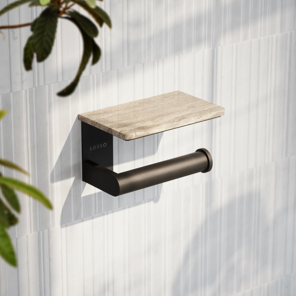 Quarried from Italy, Travertine offers a natural hue to your space with neutral tones and texture. Pair with other matte black pieces by Lusso, including soap dispensers and toilet brushes to ensure a cohesive look.