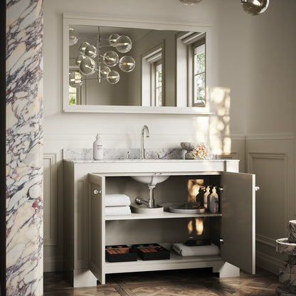 At 1200mm wide, the Eaton Freestanding Vanity Unit can be easily placed within a range of bathrooms. The doors of the vanity have been designed with a soft closing, push to open mechanism that negates the need for handles, and if you’re intending on using handles, the hinges are completely concealed to allow you personal choice on the finish of fittings and bathroom taps.