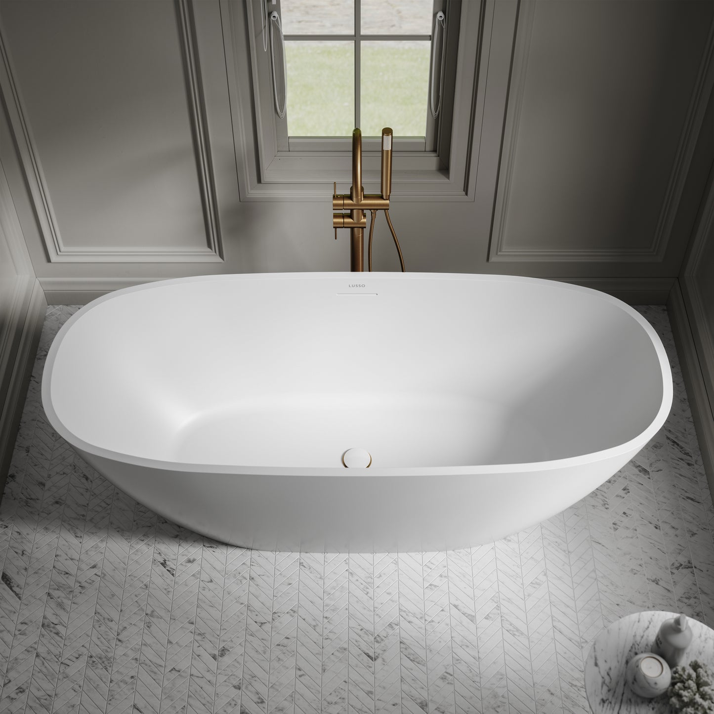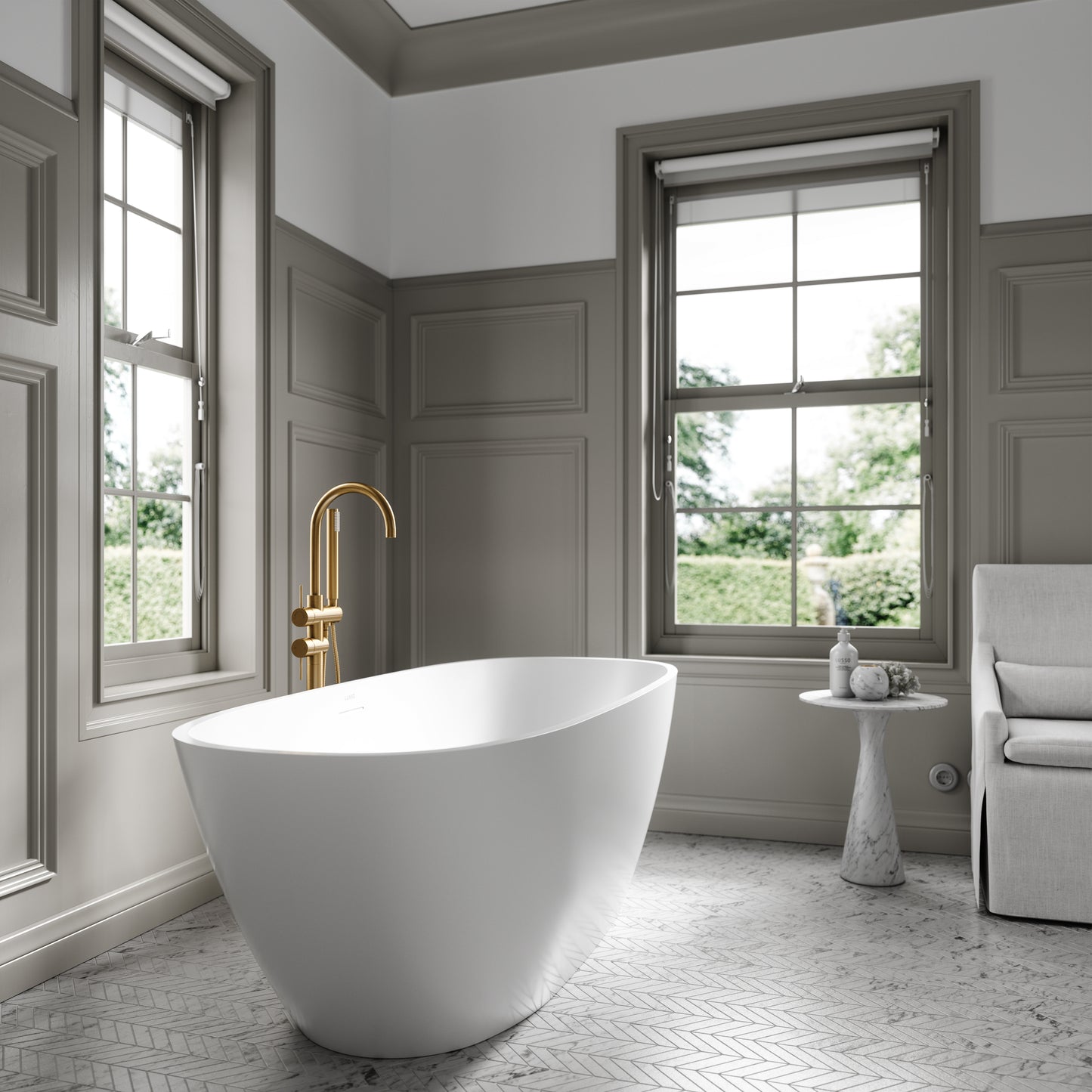 Effortlessly combining minimalist elegance with indulgent bathing, the Monaco freestanding bath creates a commanding presence with a 1700mm silhouette. Its expansive proportions and sculptural form is now reimagined in Lusso Light acrylic - a lighter alternative to traditional stone.