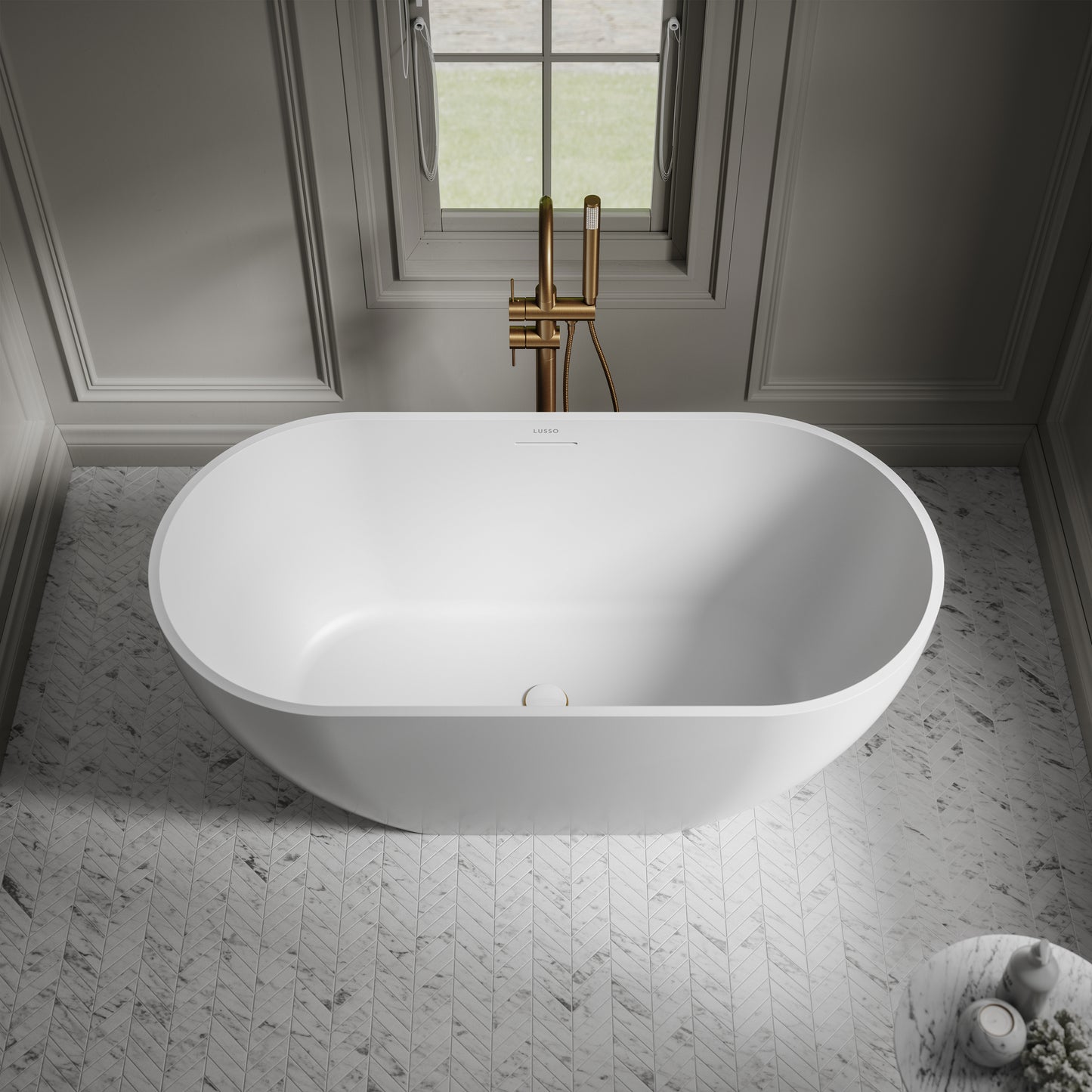 Reimagined in Lusso Light acrylic, this design provides a lighter alternative to stone while maintaining a softly textured, tactile surface. Handcrafted by skilled artisans, the bath is sculpted to support comfortable bathing at either end, creating a serene focal point that elevates modern interiors with subtle opulence.
