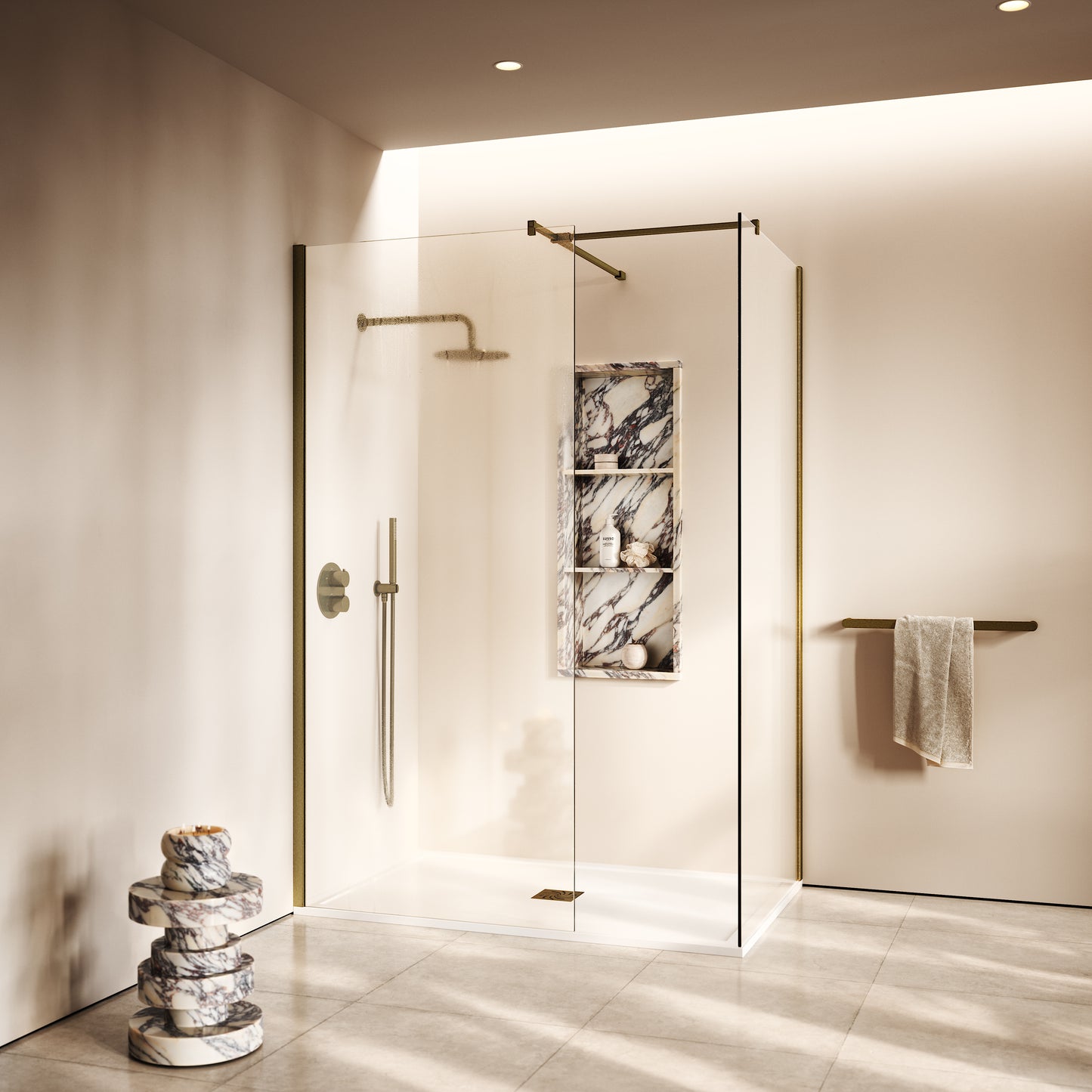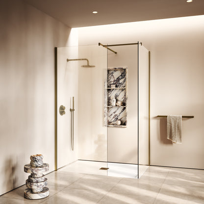 Beautifully minimal, the shower enclosure can be paired with both concrete and wooden floors, allowing you to create a sleek aesthetic throughout any space. Containing a solid stone shower tray crafted from our signature stone resin, and boasting rustic Aged Bronze accents, the Modular ensures a sophisticated addition to your bathroom, complete with all fixings needed to secure within your home.