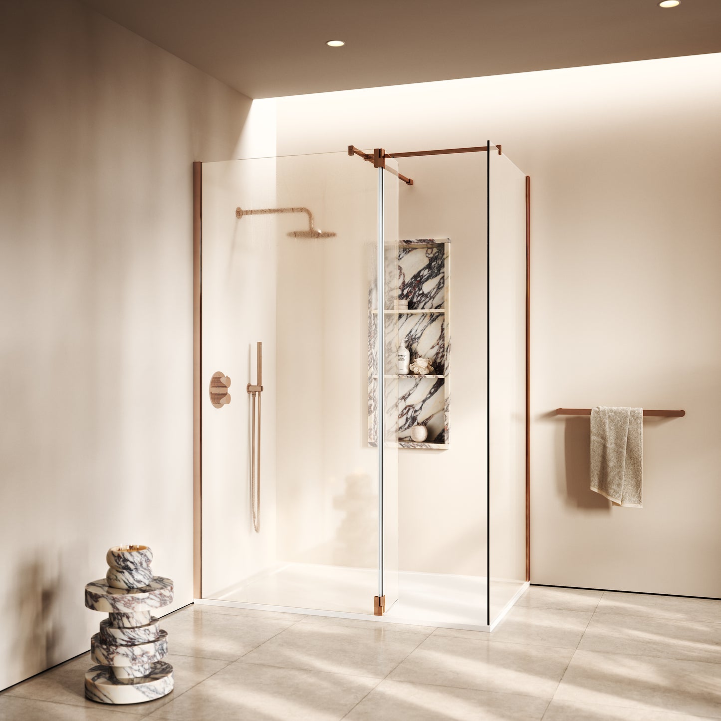 Modular Complete Walk In Shower Enclosure Rose Gold - KIT A (ALL SIZES)Regular price £587.00 (£489.17 EX VAT)Sale price From £587.00 (£489.17 EX VAT)Unit price / per8 OptionsRegular price £587.00 (£489.17 EX VAT)Sale price From £587.00 (£489.17 EX VAT)Unit price / per