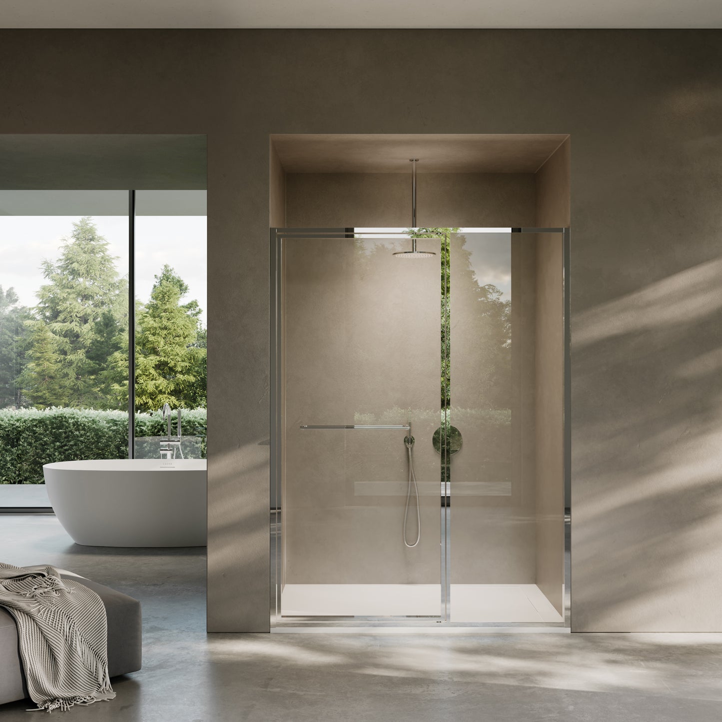 In our signature chrome finish, the contemporary shower door and screen are perfect for completing your bathroom along with a chrome thermostatic shower, and taps and accessories, from the Lusso collection.