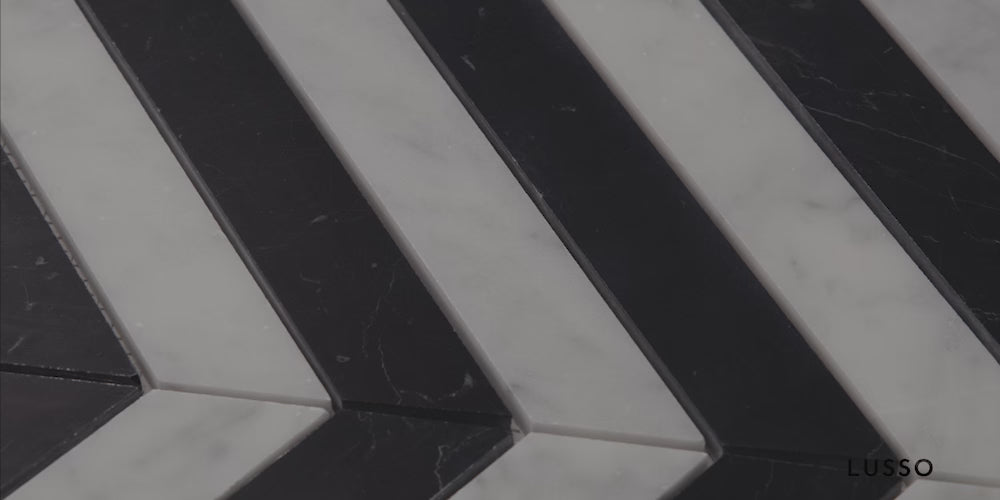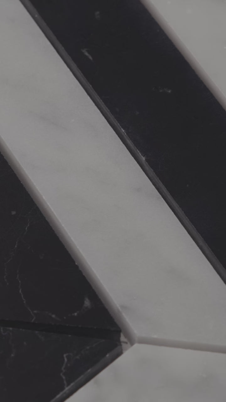 Palazzo Chevron Carrara & Nero Marquina Marble Mosaic Tile Sample
